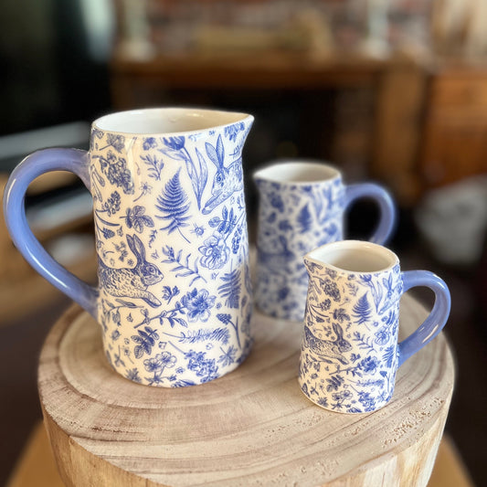 Spring Rabbit Ceramic Jug | Blue Country Home Decor