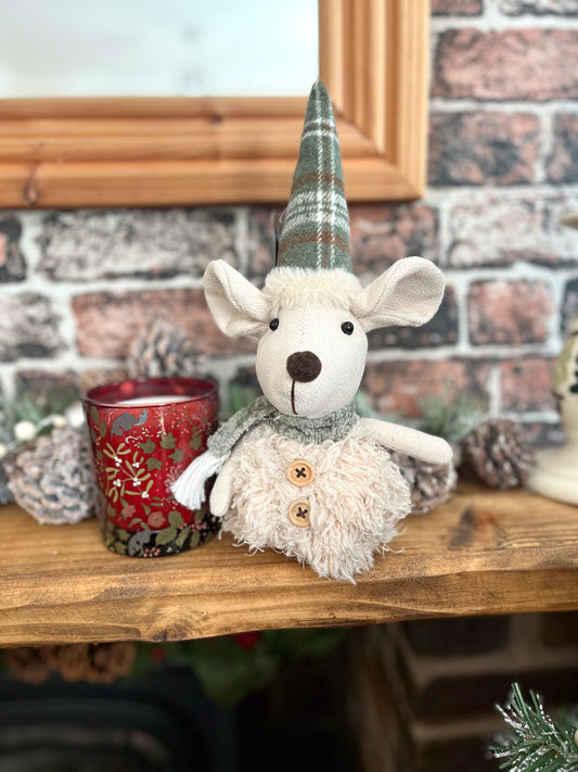 Fabric Mouse Shelf Sitter With Green Tartan Hat