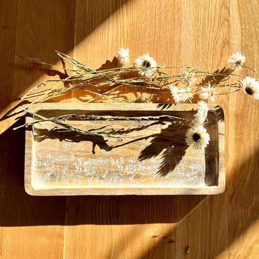 Etched Wooden Tray | Rustic Wildflower Decor