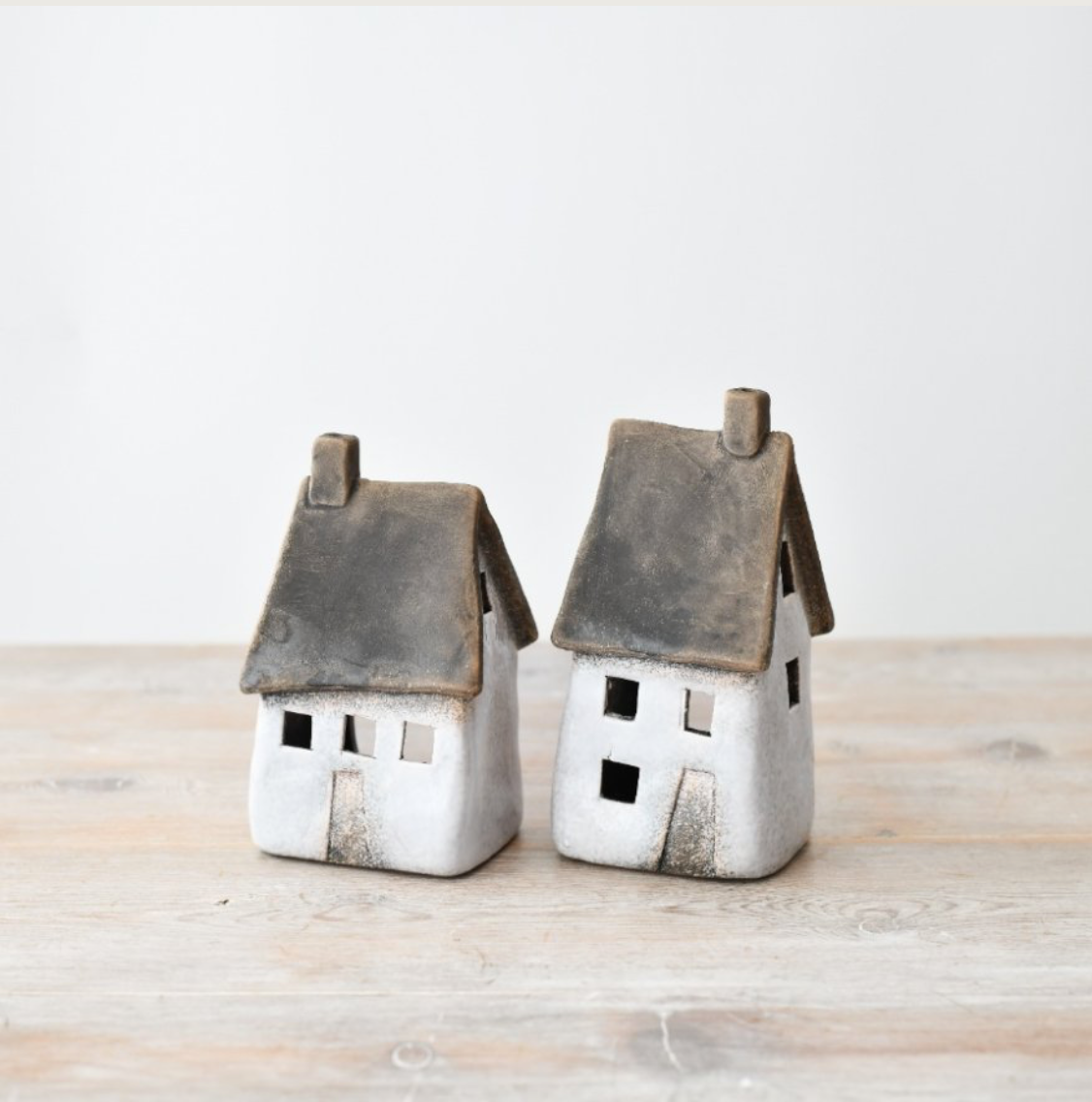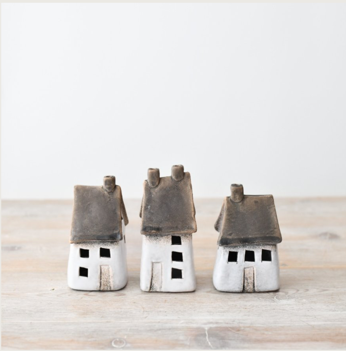 Discover the charm of our Ceramic L.E.D Light Up Houses, available in 3 distinct designs and 2 sizes. Each piece is hand finished with rustic details, creating a unique and inviting ambiance in any space. Sold separately, choose the perfect combination for your home decor to create your own little village. There is even a larger version that acts as a tea-light holder with the same 3 unique designs.