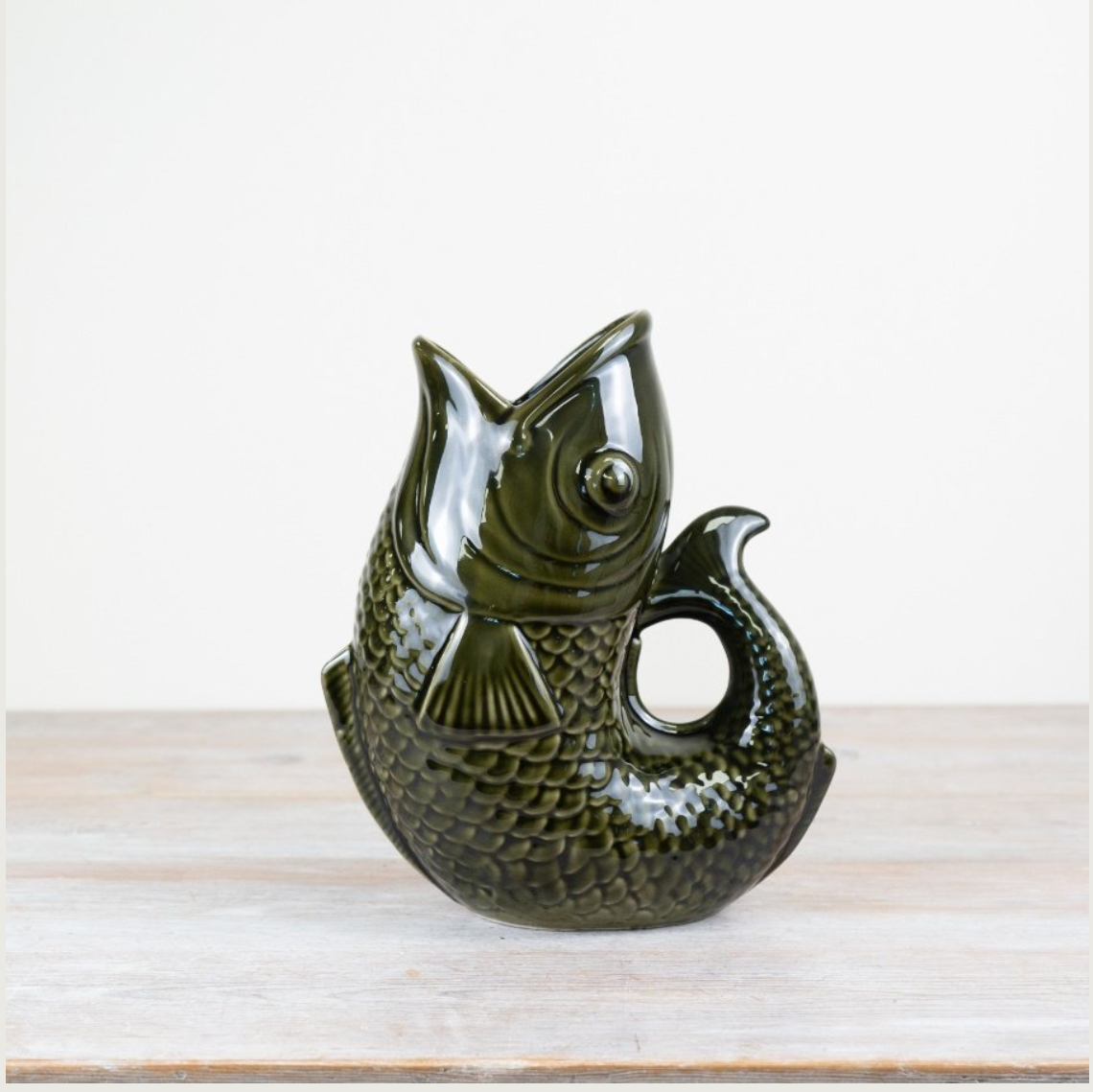 Add a splash of life with this dark green gluggle jug! Available in two sizes, its silky ceramic surface and rich green hue bring a touch of character to any space. Pour water and hear that wonderful "glug glug" sound - a playful touch that makes it perfect as a jug or a unique vase for your favourite blooms. Functional and fun, it’s sure to brighten up your kitchen or table with style and personality.