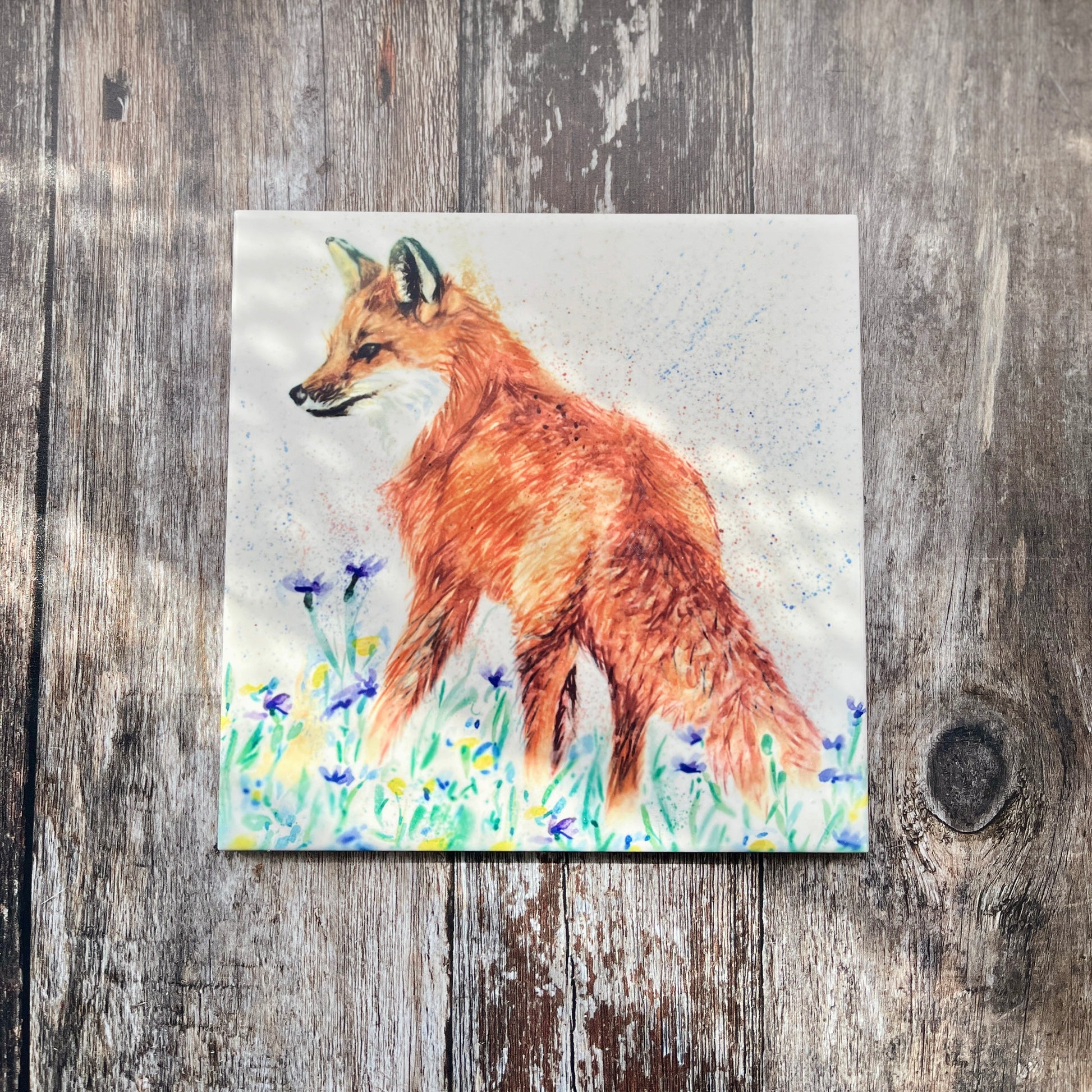 Fox & Wildflowers Square Ceramic Trivet