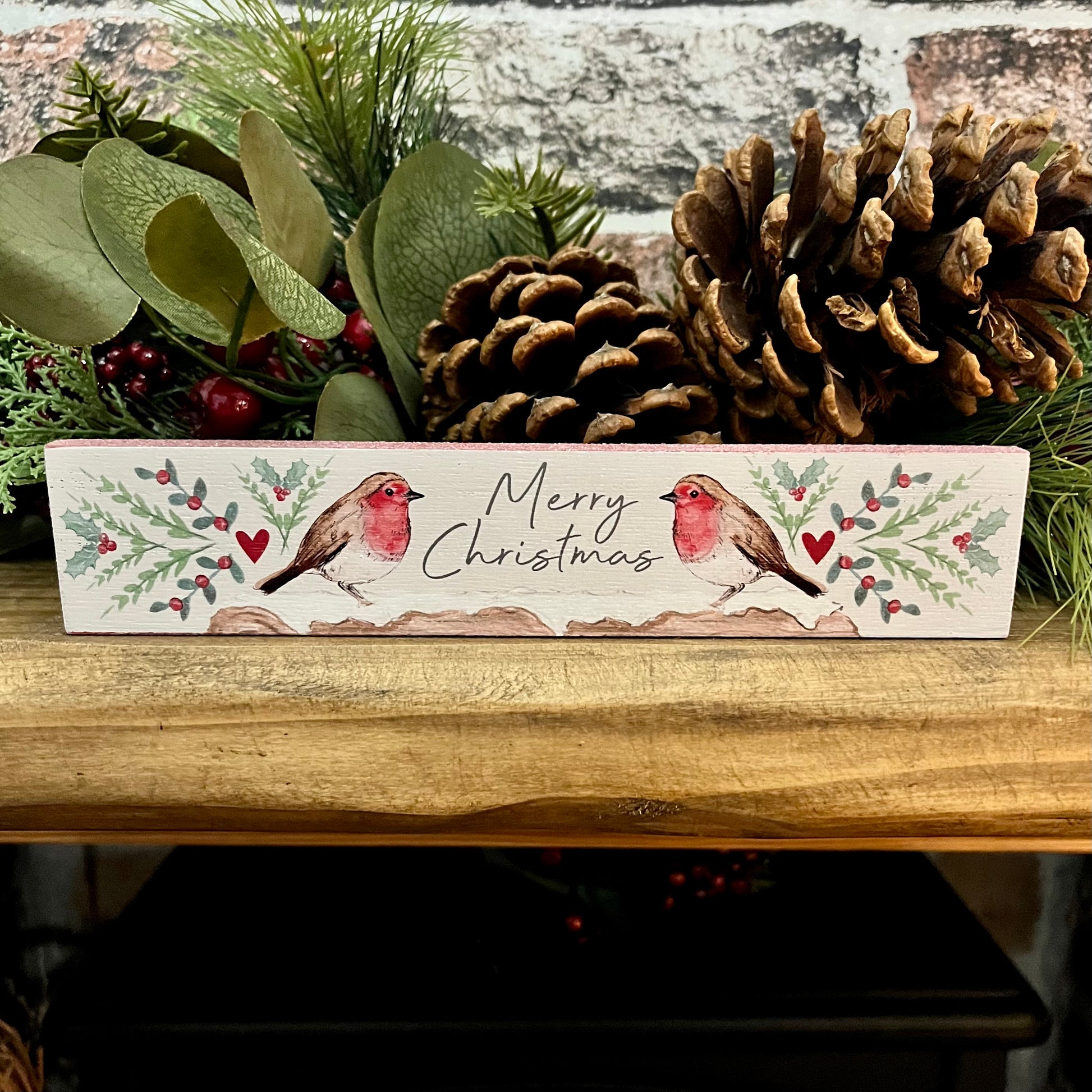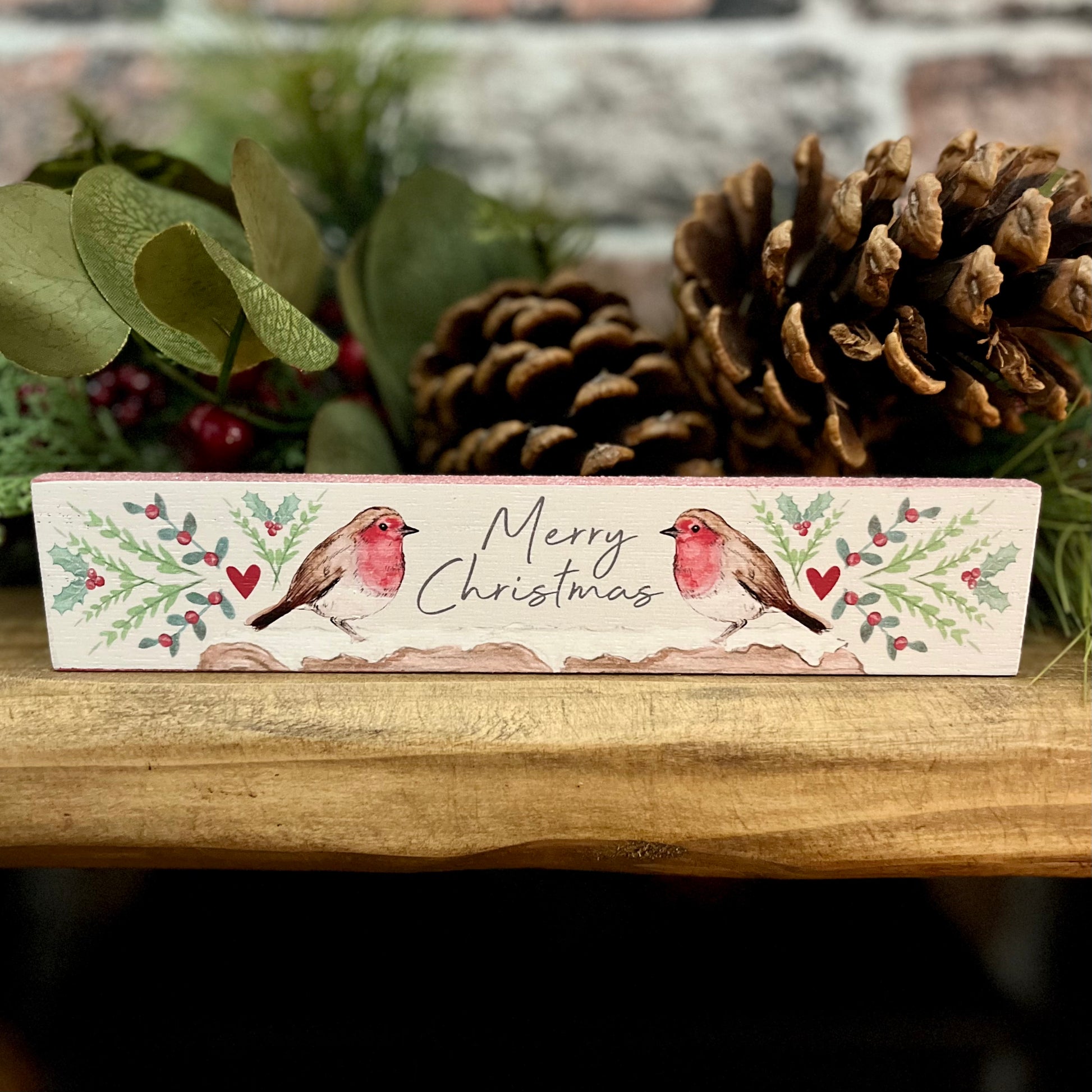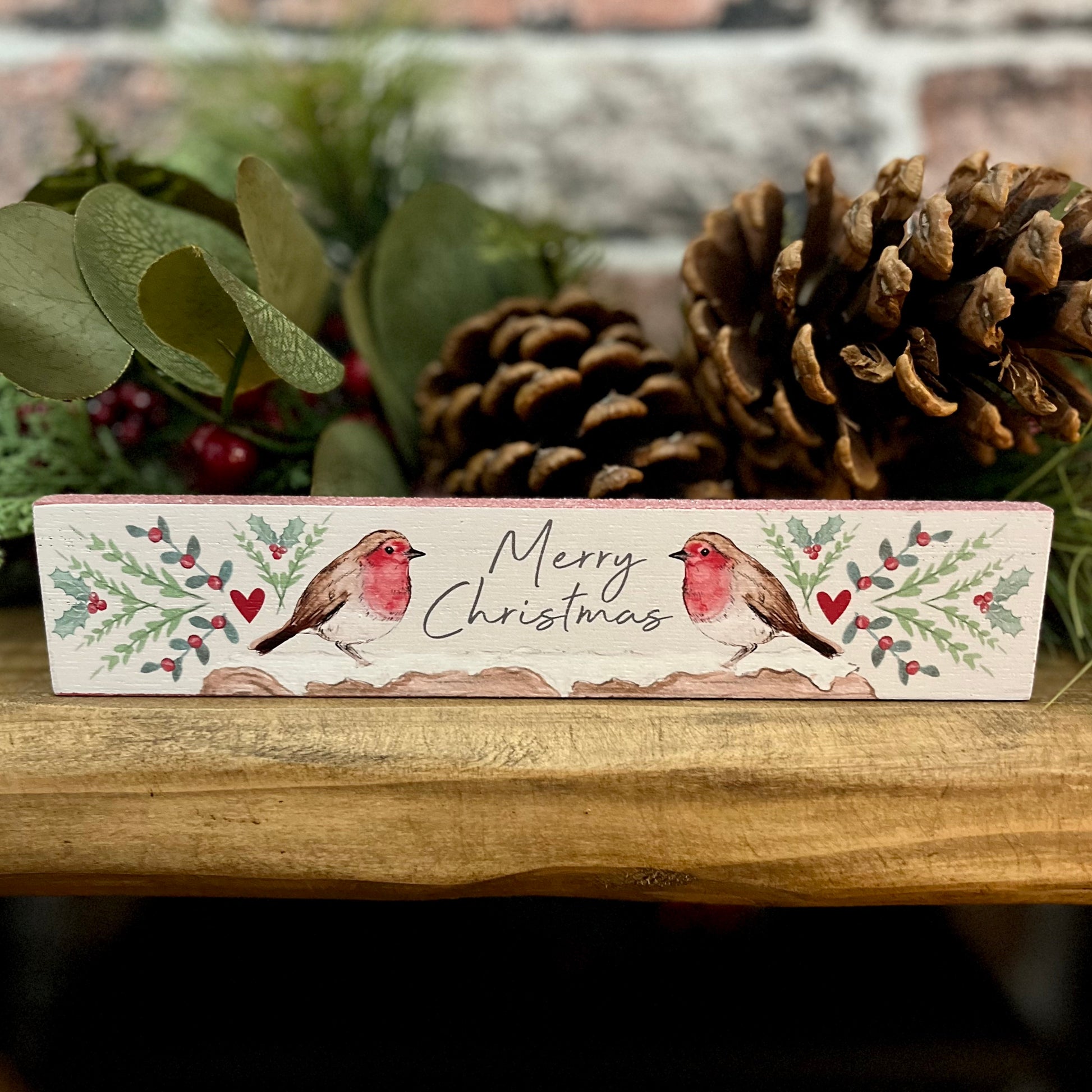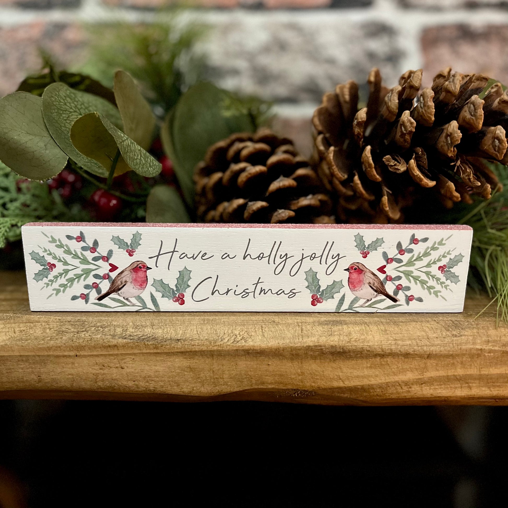 Create a festive display with these glitter robin wooden blocks. Each block features one of three Christmas phrases, encrusted with shimmering glitter for a touch of sparkle. Perfect for a Christmas table favour.