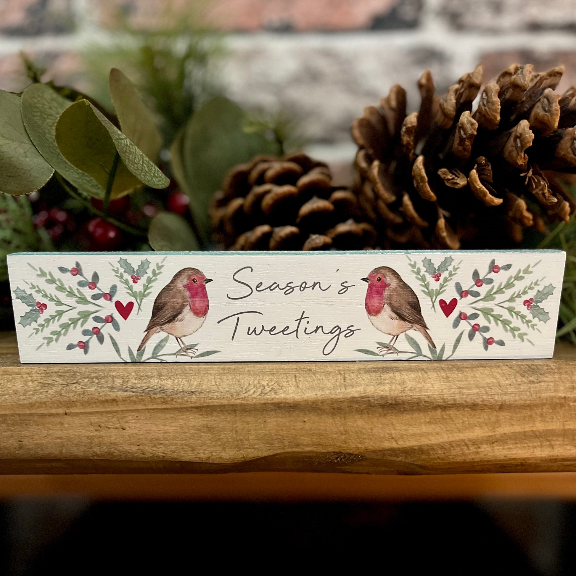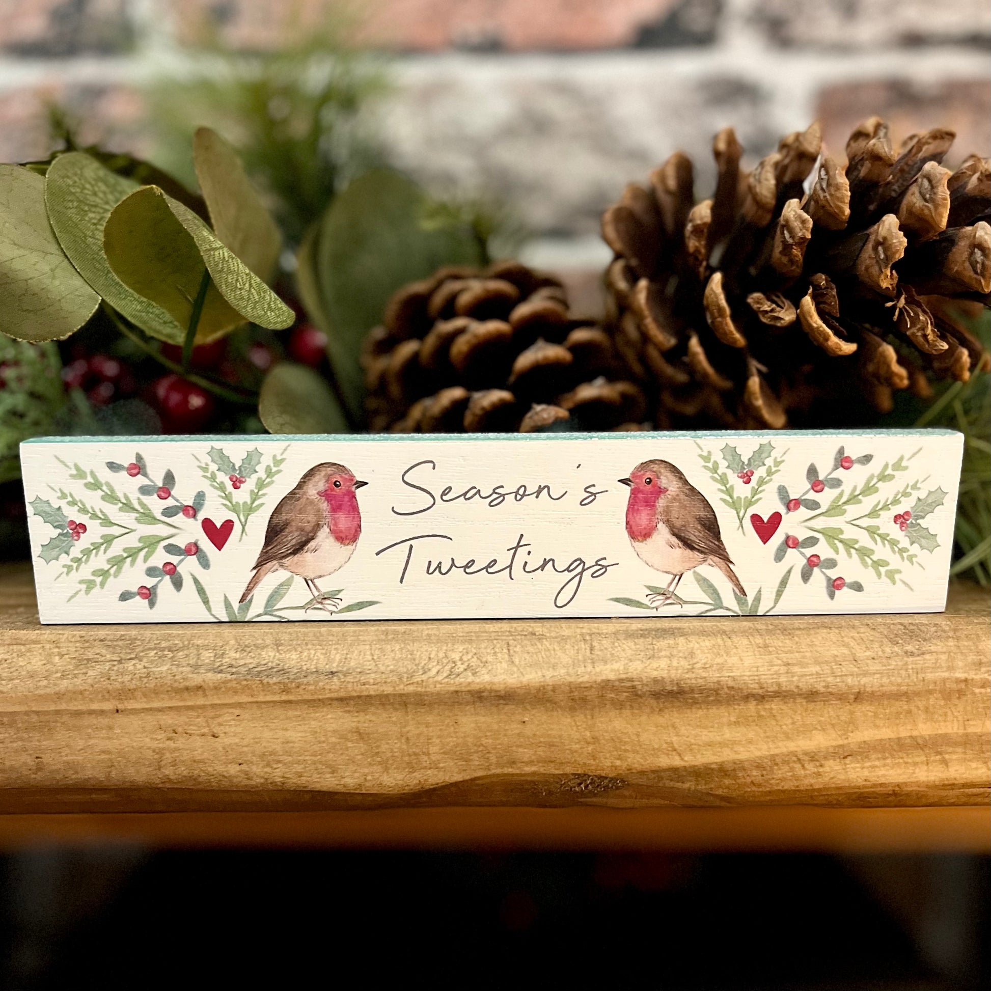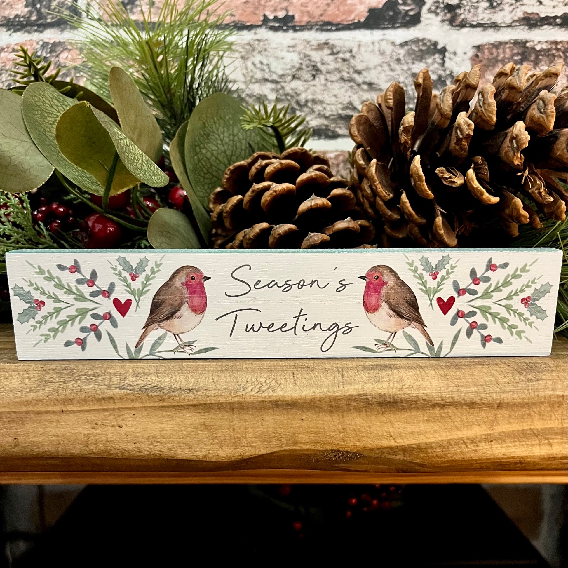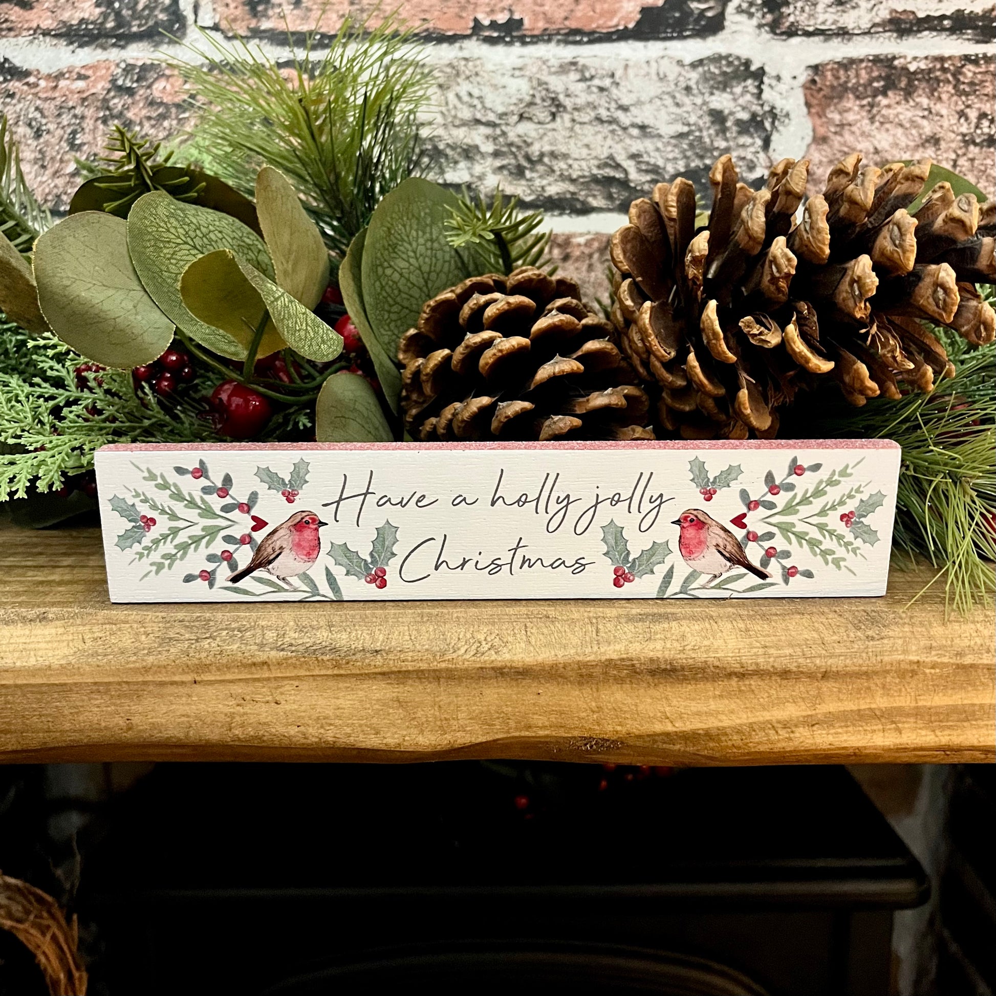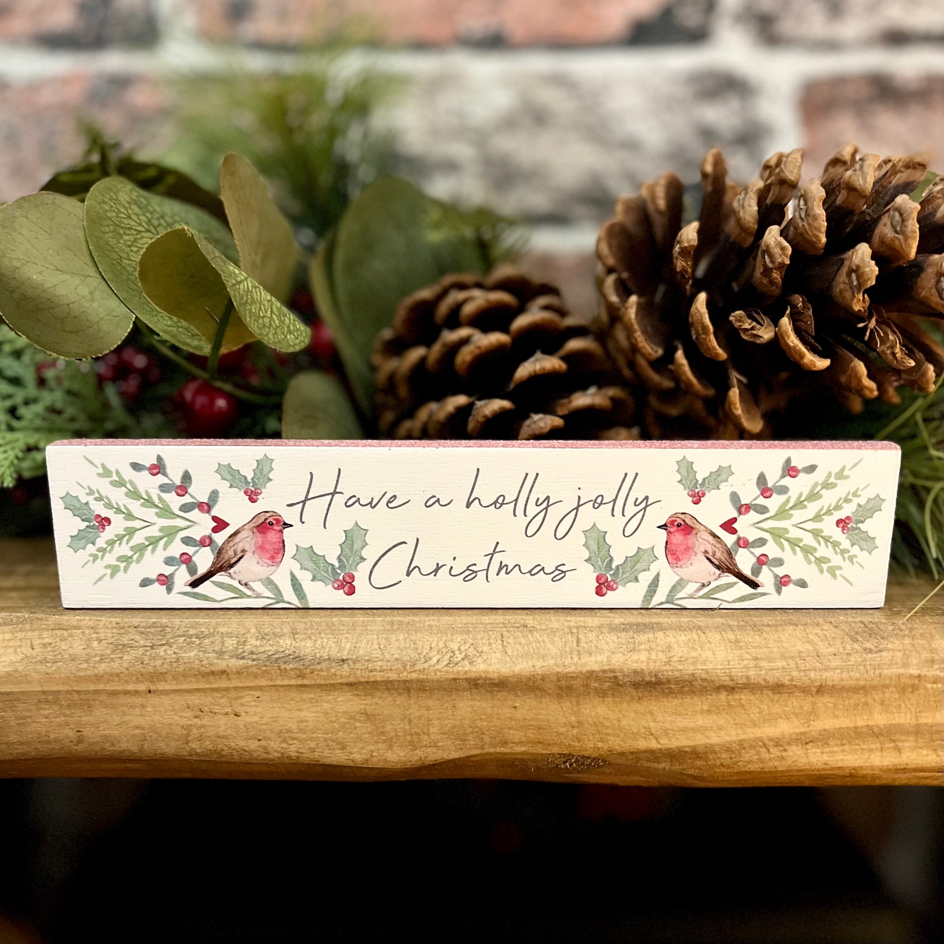Create a festive display with these glitter robin wooden blocks. Each block features one of three Christmas phrases, encrusted with shimmering glitter for a touch of sparkle. Perfect for a Christmas table favour.