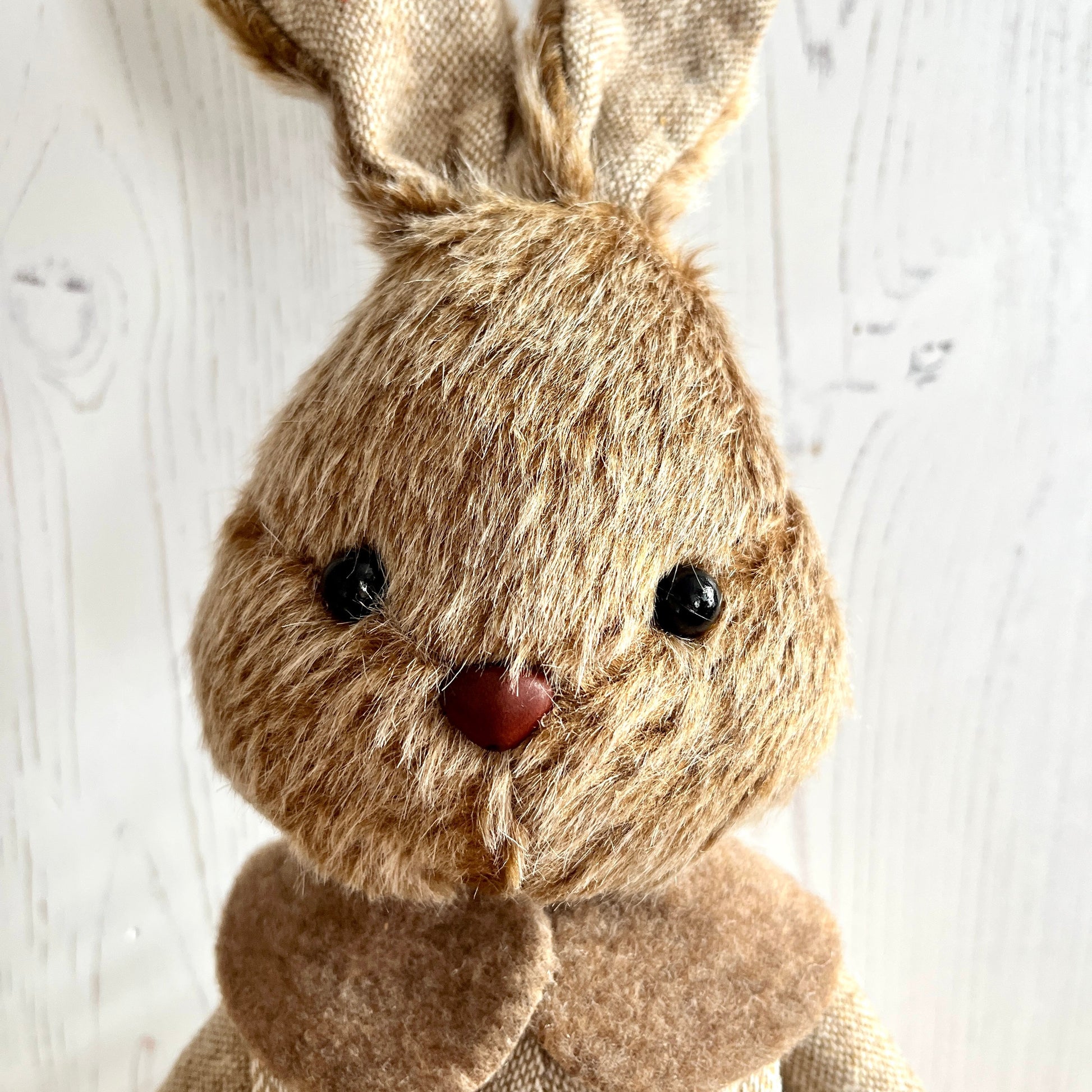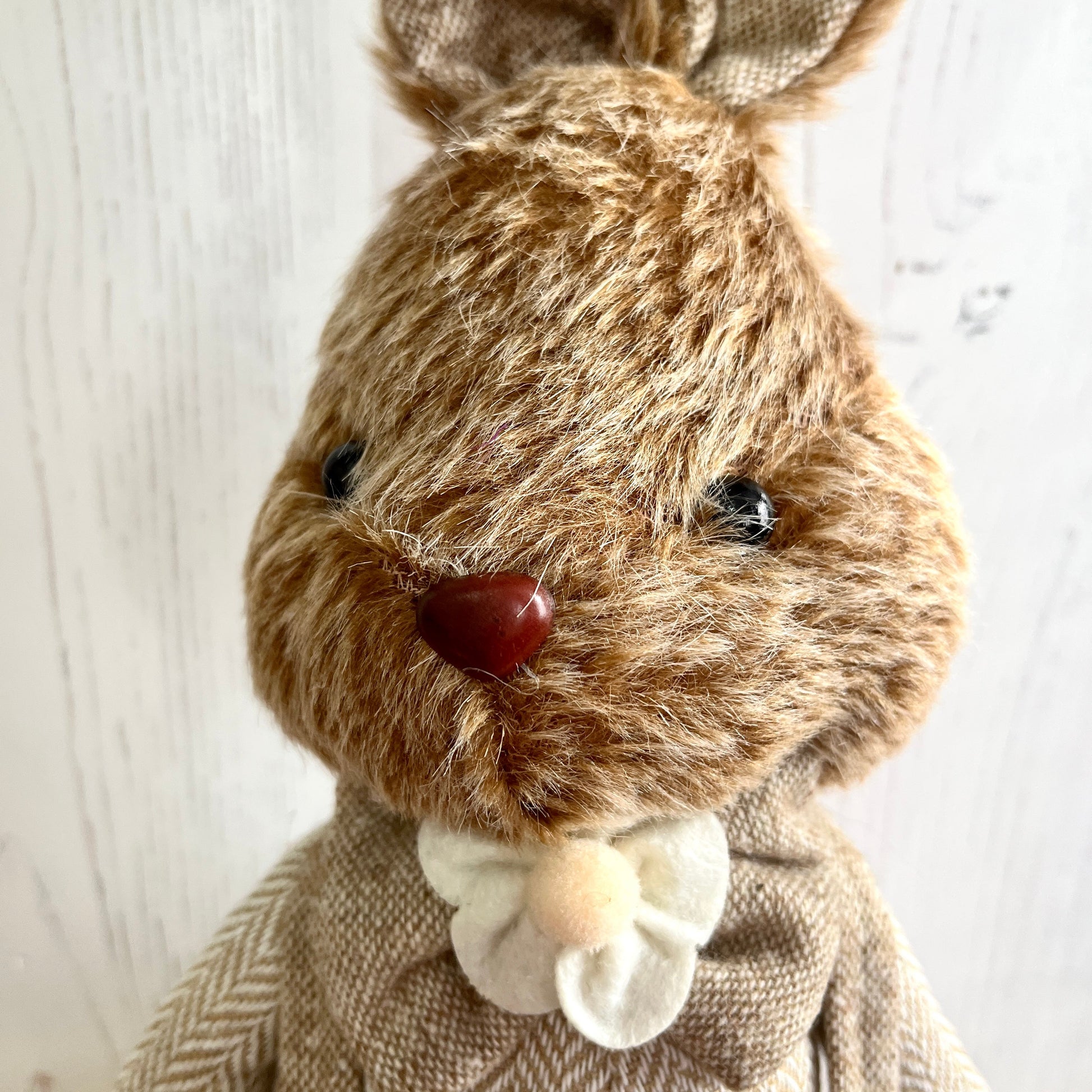 Freestanding Plush Bunny Figurine – Mr or Mrs Bunny, Rustic Easter Decor, Farmhouse Spring Ornament, Cute Plush Rabbit Decoration