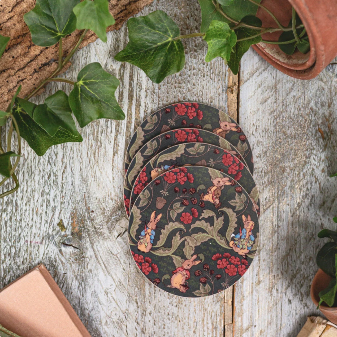 Meet your mischievous new tabletop companion! This beautiful coaster features beloved characters from Beatrix Potter's tales, Peter Rabbit, Benjamin Bunny, and Flopsy Bunny, caught in their most notorious moment as 'The Vegetable Thief'. Crafted from durable melamine with a protective cork backing, it's built to withstand daily use whilst adding a playful touch to your home. Sold as a single, it's the perfect gift for Peter Rabbit fans or a delightful way to protect your surfaces with a dash of classic storybook magic.