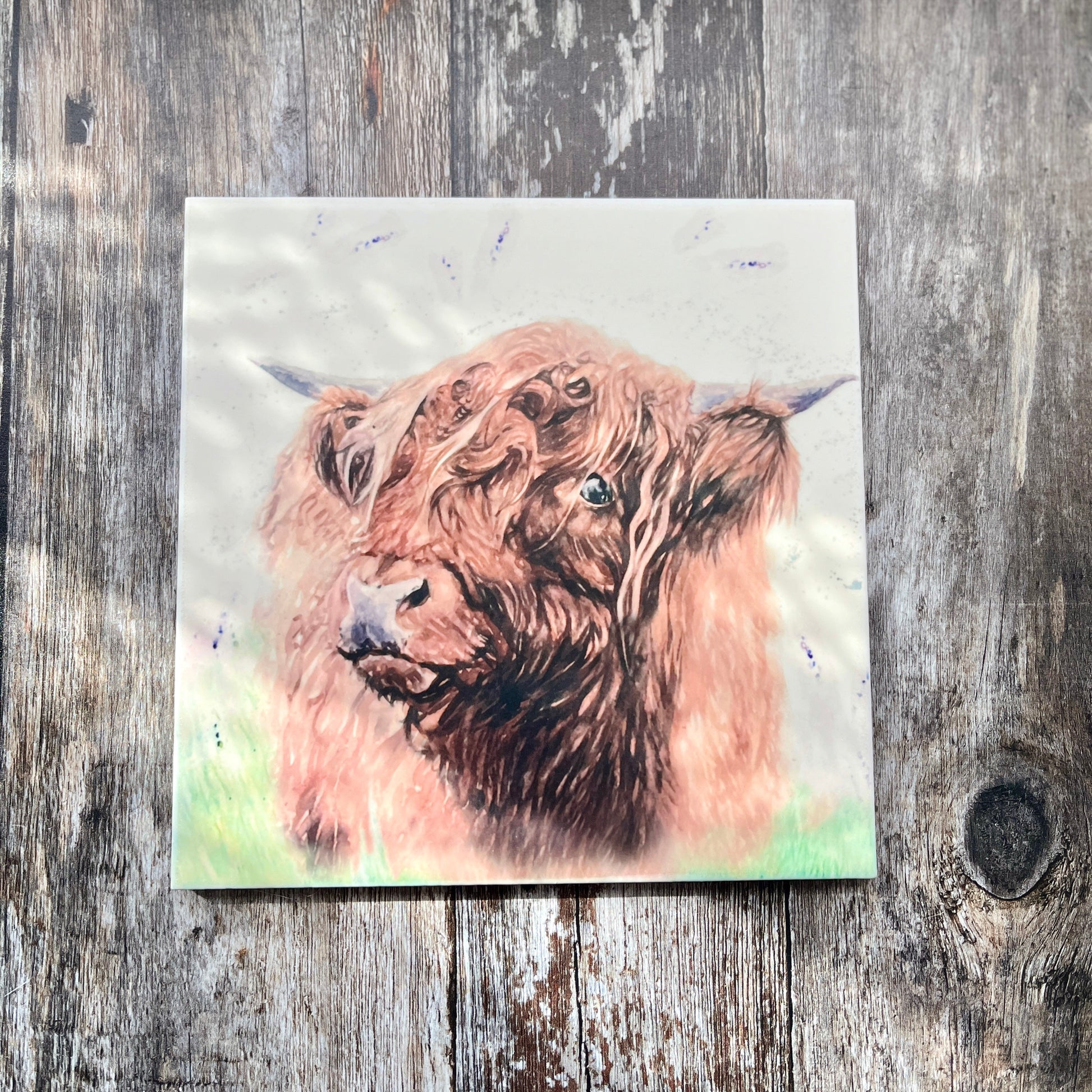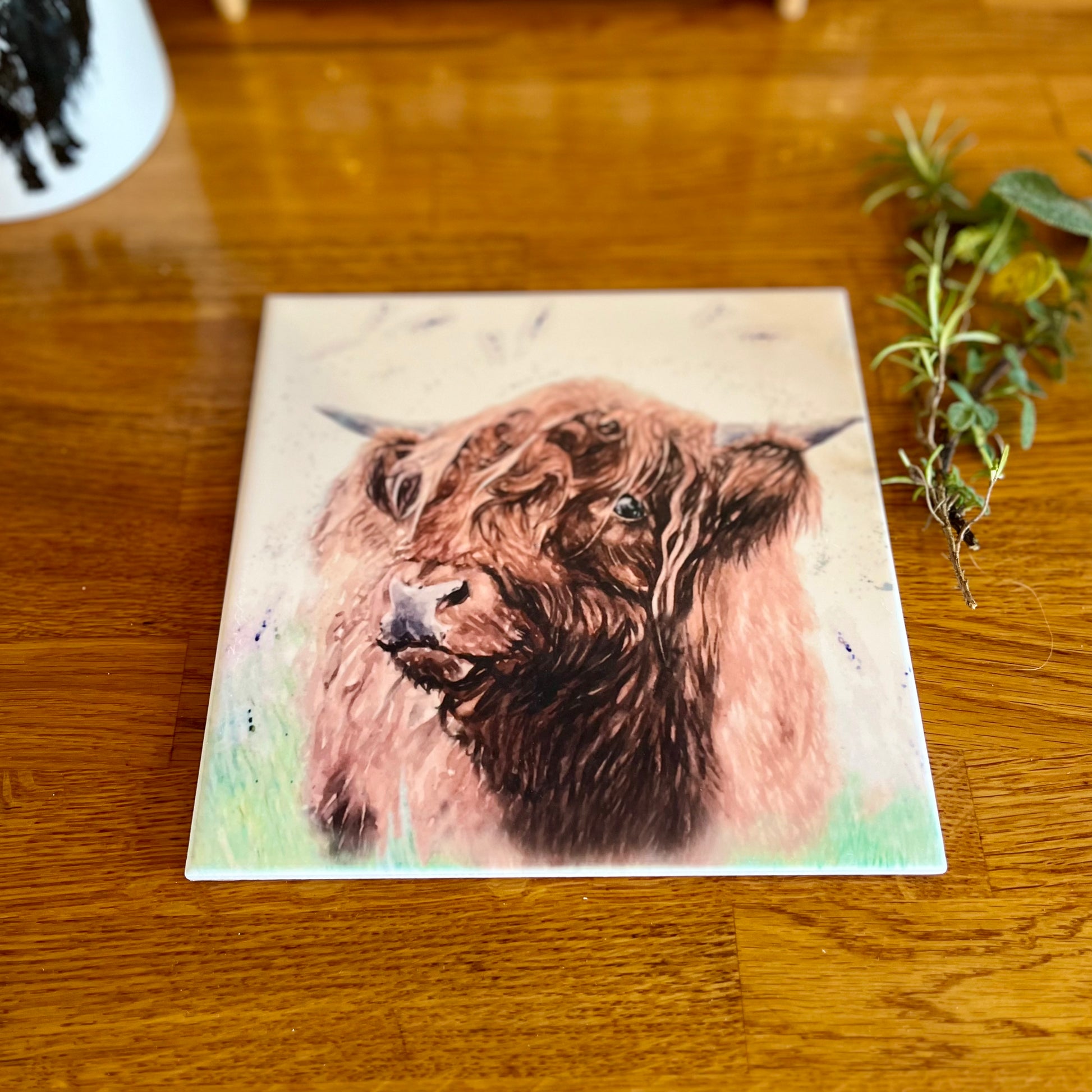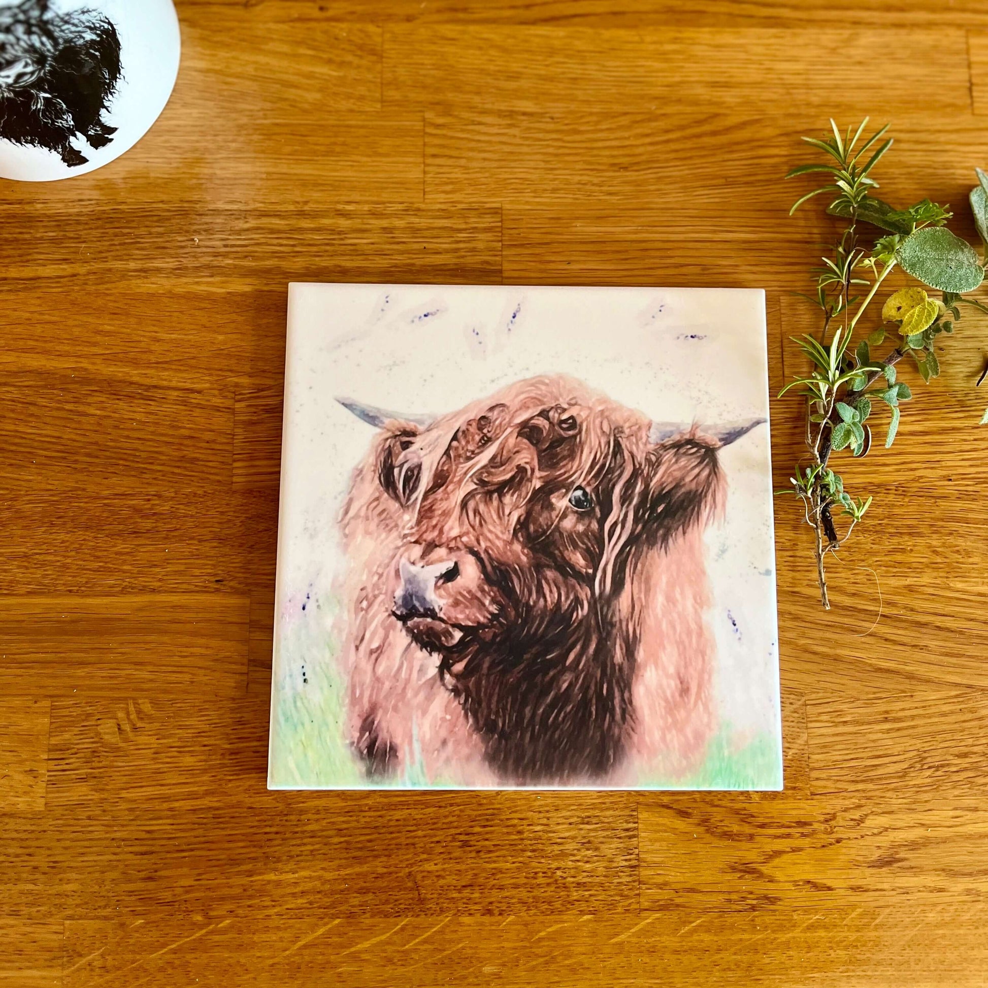This functional, handmade trivet features the charming Hamish the highland cow, adding a touch of country charm to your kitchen. With its multipurpose design, it is perfect for protecting your countertops from hot dishes or for displaying as a decorative piece or serving platter. Made in the UK with quality ceramic, this trivet is both practical and visually appealing.
